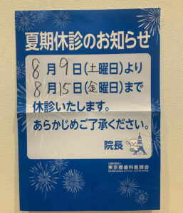 誠に勝手ながら、以下の期間を夏季休診とさせていただきます。